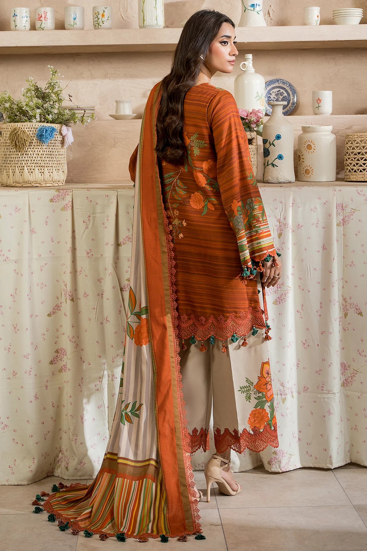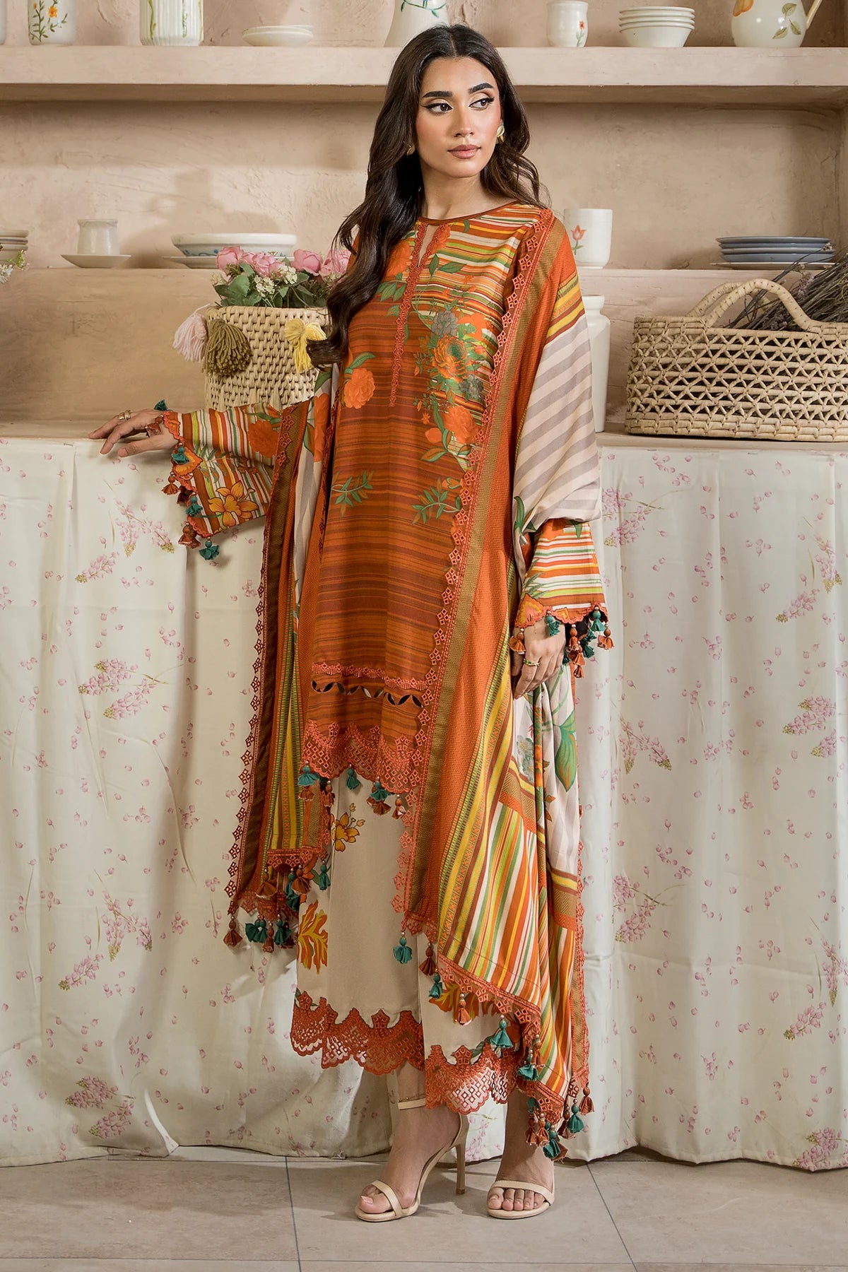 Embroidered Printed staple shawl 2.5 Meter